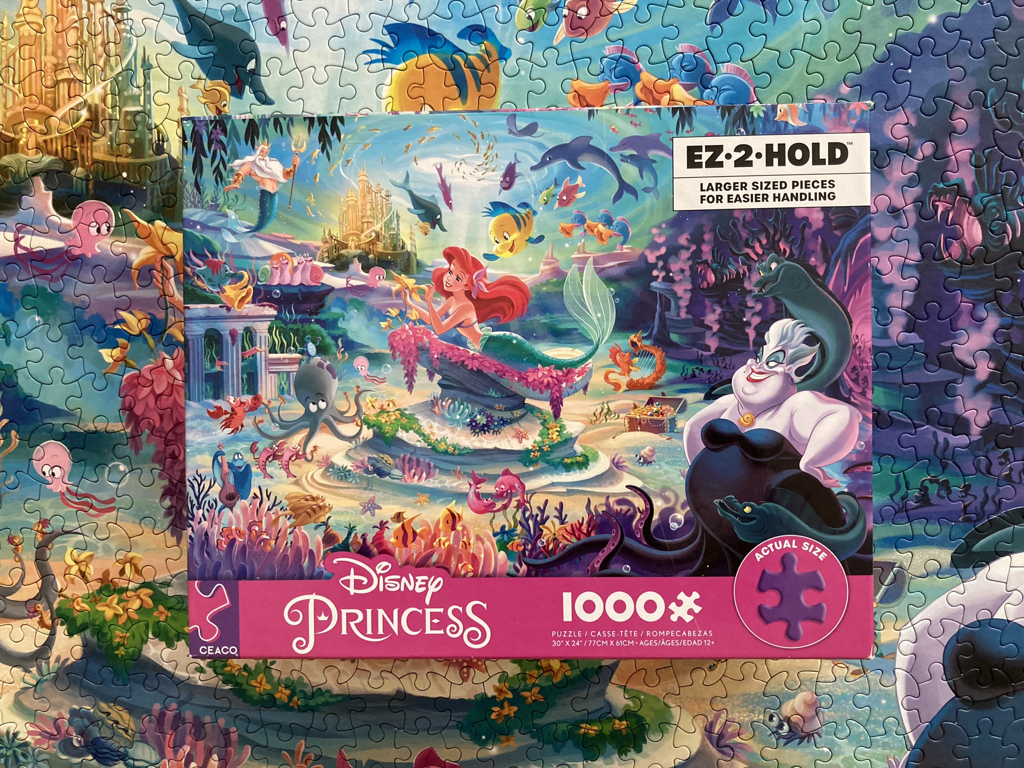 Puzzle Ceaco wyróżniają się nie tylko magią Disneya, ale także unikatowym wykrojnikiem, który zapewnia rozrywkę na najwyższym poziomie. Puzzle w wersji EZ-2-HOLD (easy to hold) są większe od standardowych elementów, co ułatwia układanie i daje piękny duży obraz na sam koniec.  Intensywne, żywe kolory grafik oddają piękno kultowych postaci i scen z ulubionych animacji, tworząc niesamowitą wizualną przyjemność podczas układania. To puzzle, które zachwycają zarówno jakością, jak i estetyką, oferując fanom Disneya wyjątkowe doświadczenia.